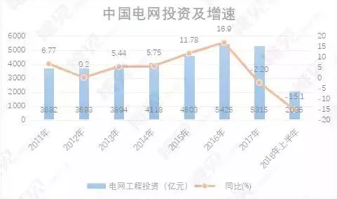 “十二五”以來,我國(guó)電網(wǎng)投資總體都保持增長(zhǎng),2017年電網(wǎng)投資開始出現(xiàn)首次下降。國(guó)家能源局的最新數(shù)據(jù)顯示,2018年上半年,我國(guó)電網(wǎng)工程投資金額為2036億元,同比大幅下滑15.1%。