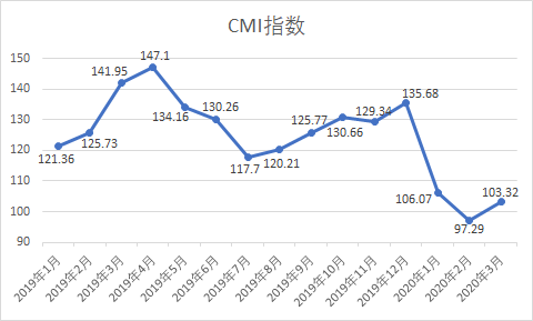 一、3月CMI指數(shù)為103.32,環(huán)比有所提高